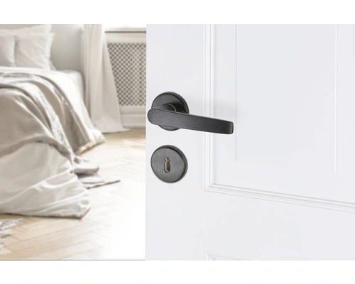 AXA Deurkruk Paar Curve Klik Met Kruk Curve Op Rozet Met Sleutelplaat Zwart