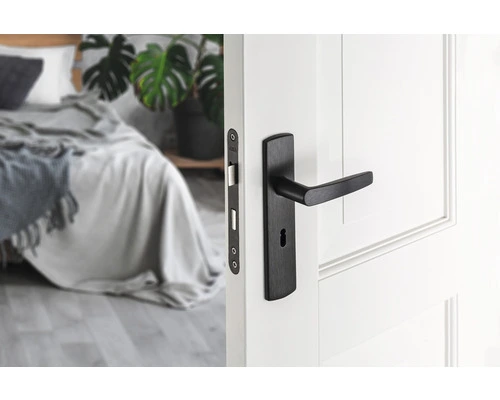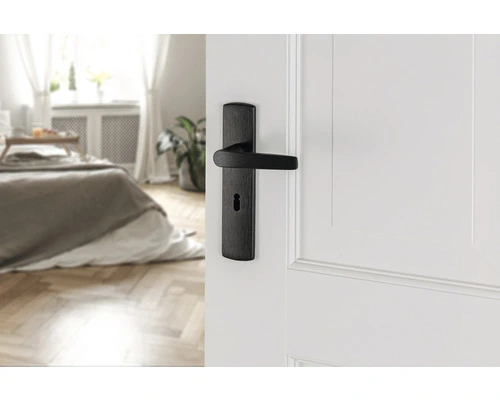 AXA Klavierslot 7135 Dag-nacht SL55 Zwart Met Beslag (deurbeslag Curve Klik Met Kruk Curve Op Schild SL Zwart)