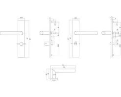 INTERSTEEL Deurkruk Paar Hoek 90° Op Recht Schild Met Sleutelgat SL56 RVS Geborsteld