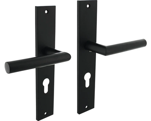 INTERSTEEL Deurkruk Paar Bastian Op Schild Met Profielcilindergat PC72 Zwart Mat