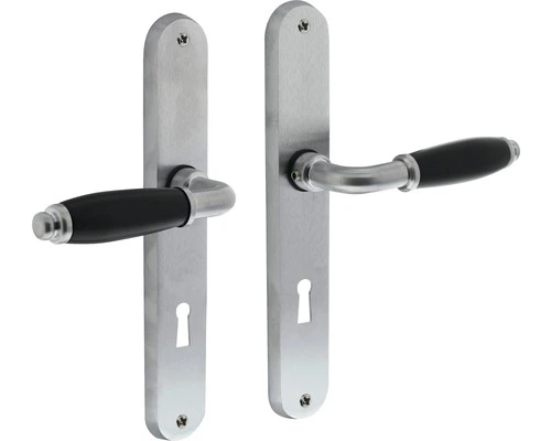 Deurkruk Courgette kenmerkt zich door een stijlvolle en bijzondere vormgeving. Deze deurklink op een ovaal schild met sleutelgat maat 56 mm is uitgevoerd in chroom en naderhand geborsteld, waardoor het een matte uitstraling krijgt. Door de combinatie met een zwarte greep, heeft deze kruk een bijzondere uitstraling. Deze kruk wordt per paar geleverd en het schild is voorzien van schroefgaten. Het voordeel van deurkrukken op schild is dat ze vaak de gaten afdekken die voorheen in de deur zaten.