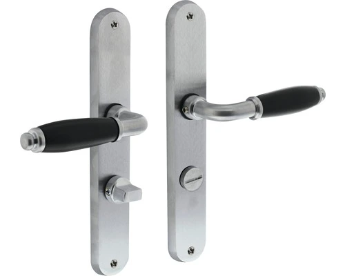 Deurkruk Courgette kenmerkt zich door een stijlvolle en bijzondere vormgeving. Deze deurklink op een ovaal schild is voorzien van een toiletsluiting op 63 mm, waarmee u gemakkelijk een toilet kunt openen en afsluiten. Deze deurklink is uitgevoerd in chroom en naderhand geborsteld, waardoor het een matte uitstraling krijgt. Door de combinatie met een zwarte greep, heeft deze kruk een bijzondere uitstraling. Deze kruk wordt per paar geleverd en het schild is voorzien van schroefgaten. Het voordeel van deurkrukken op schild is dat ze vaak de gaten afdekken die voorheen in de deur zaten.