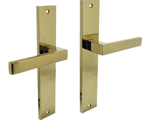 De populaire deurkruk Hera is nu ook verkrijgbaar op een rechthoekig schild. Hera is uitgevoerd in zamak en voorzien van een messingkleurige PVD coating, waardoor hij een glanzende gouden uitstraling krijgt. Deze deurkruk op een blind schild met schroefgaten wordt per paar geleverd inclusief bevestigingsmateriaal voor montage. Daarnaast is het schild geveerd zodat de deurkruk na gebruik weer terugveert naar zijn horizontale positie. Het voordeel van deurkrukken op schild is dat ze vaak de gaten afdekken die voorheen in de deur zaten.