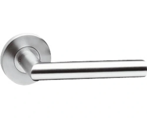 Deze rechte deurkruk met een hoek van 90° is vervaardigd uit roestvast staal en is naderhand geborsteld, waardoor de kruk een matte uitstraling krijgt. Door het gebruik van RVS heeft dit product een lange levensduur. Deze deurkruk op rond rozet wordt per paar geleverd.