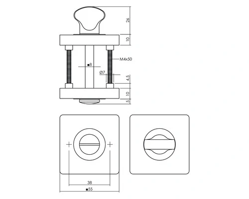 INTERSTEEL Rozet Vierkant Met WC-/badkamersluiting Messing Titaan PVD