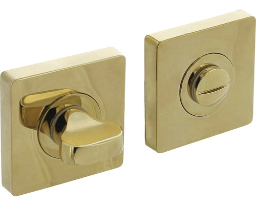 Deze verdekte vierkante rozet met toilet-/badkamersluiting is gemaakt van zamak heeft een afmeting van 55x55x10 mm. Naderhand is de rozet voorzien van een hoogwaardige messingkleurige PVD coating wat een gouden uitstraling geeft. De rozet is voorzien nokken, waardoor hij beter op zijn plek wordt gehouden. De rozet wordt per set geleverd inclusief bevestigingsmateriaal.