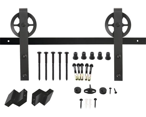 Dit stalen schuifdeursysteem heeft een mat zwarte poedercoating. De maximum draagkracht is 100 kg en het geheel is eenvoudig te monteren.