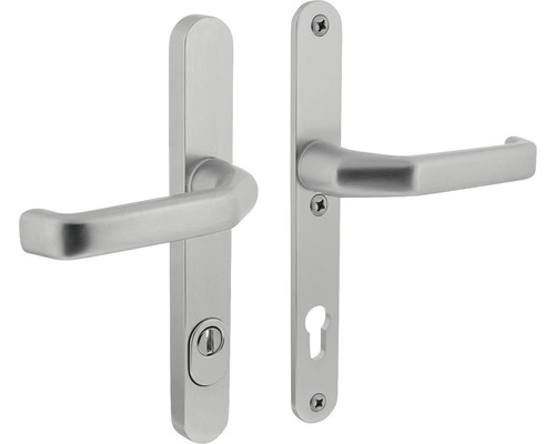 Deze ovale set achterdeurbeslag op een smal schild bestaat uit aluminium en is hierdoor licht van gewicht en sterk tegelijk. Het veiligheidsbeslag is F1 gematteerd, waardoor het een zilverkleurige uitstraling krijgt. Het product is SKG*** gekeurd, wat betekent dat het om zwaar inbraakwerend beslag gaat. Daarnaast is het voorzien van kerntrekbeveiliging, waardoor de cilinder wordt beschermd tegen het uittrekken en uitboren van de cilinderkern. Deze set is voorzien van een kruk aan de buitenzijde en een bijpassende kruk voor binnen en is zowel links als rechts toepasbaar. Het veiligheidsbeslag is geveerd en heeft een profielcilindergat maat van 92 mm.