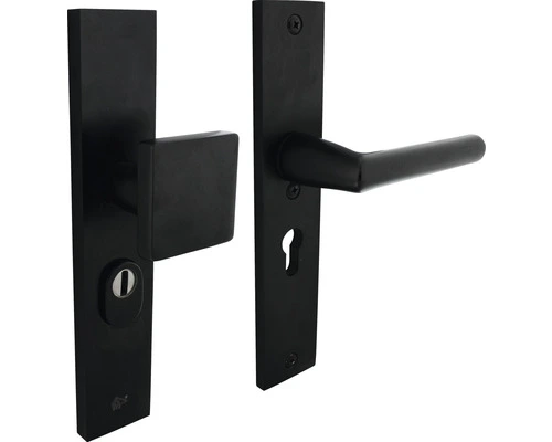 Deze rechthoekige set voordeurbeslag bestaat uit aluminium en is hierdoor licht van gewicht en sterk tegelijk. Het veiligheidsbeslag is voorzien van een zwarte coating. Het product is SKG*** gekeurd, wat betekent dat het om zwaar inbraakwerend beslag gaat. Daarnaast is het voorzien van kerntrekbeveiliging, waardoor de cilinder wordt bescherm tegen het uittrekken en uitboren van de cilinderkern. Deze set is voorzien van een greep aan de buitenzijde en een bijpassende kruk voor binnen en is zowel links als rechts toepasbaar. Het veiligheidsbeslag is geveerd en heeft een profielcilindergat maat van 55 mm.