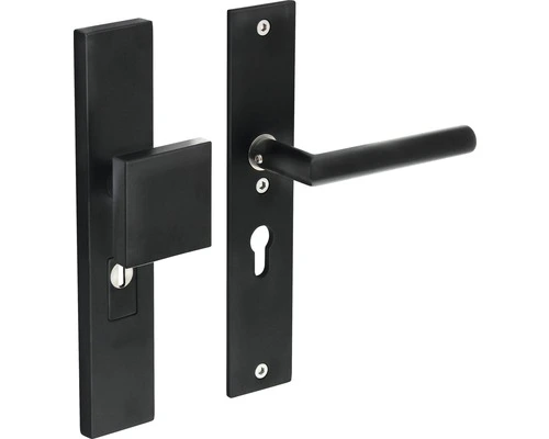 Deze rechthoekige set voordeurbeslag is uitgevoerd met extra bescherming tegen inbraak en is SKG*** gekeurd. Deze set heeft een profielcilindergat maat van 55 mm en heeft een vaste greep aan de buitenzijde en een bijpassende kruk voor binnen. Het veiligheidsbeslag is vervaardigd uit roestvast staal met een mat zwarte coating. Door het gebruik van rvs heeft dit product een lange levensduur en door de geborstelde behandeling heeft het product een matte uitstraling. Het veiligheidsbeslag is voorzien van kerntrekbeveiliging, waardoor de cilinder wordt beschermd tegen het uittrekken en uitboren van de cilinderkern. Kerntrekbeveiliging is sinds eind 2013 verplicht in nieuwbouw en sinds april 2014 ook voor bestaande bouw.