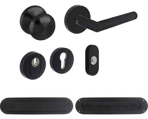 INTERSTEEL Voordeurbeslagset Zwart Mat, 7-delig
