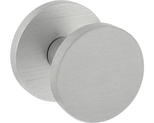 Deze voordeurknop bestaat uit aluminium en is hierdoor licht van gewicht en sterk tegelijk. De knop is F1 gematteerd, waardoor het een zilverkleurige uitstraling krijgt. Hij heeft een diameter van 55 mm en de achterplaat is 60 mm. Montage is éénzijdig en eenvoudig met het bijgeleverde bevestigingsmateriaal.