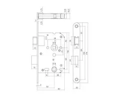 Nemef Penslot SKG* type 1008 inclusief 3 sleutels, 2 sleutelrozetten. Staal vernikkeld. Ééntoers uitslag. Stalen nachtschoot, doornmaat 47 mm.