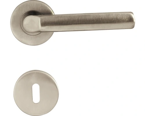 PERTURA Deurkruk Paar Silfur Op Rozet Met Sleutelplaat RVS Mat