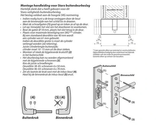 | Geschikt voor deur dikte van-tot | 38 mm – 54 mm |