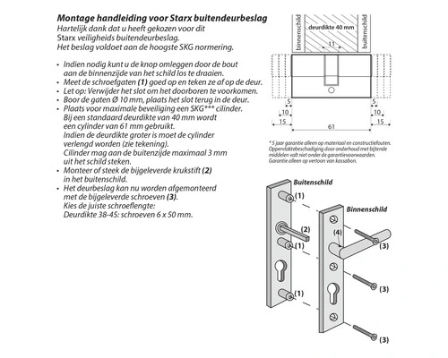 | Geschikt voor deur dikte van-tot | 38 mm – 45 mm |